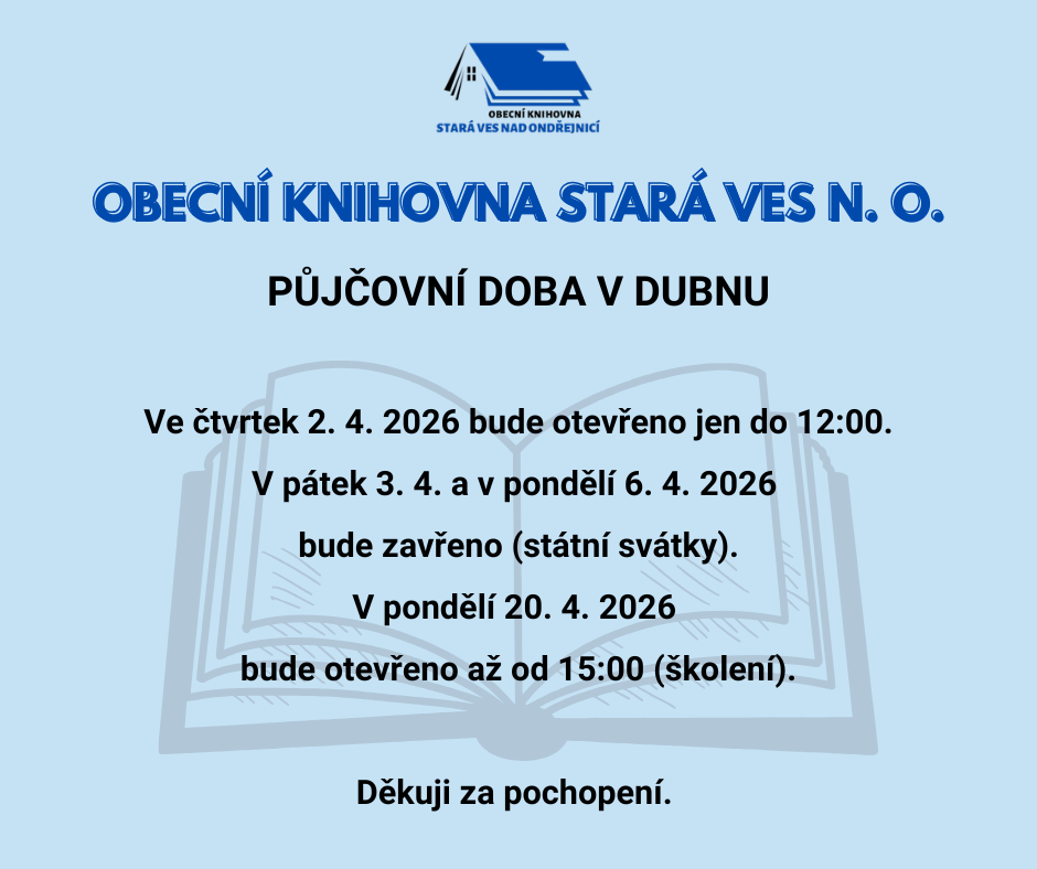 Upozorňujeme na drobné změny půjčovní doby v měsíci dubnu v souvislosti s velikonočními svátky, účastí na školeních a čerpáním dovolené.